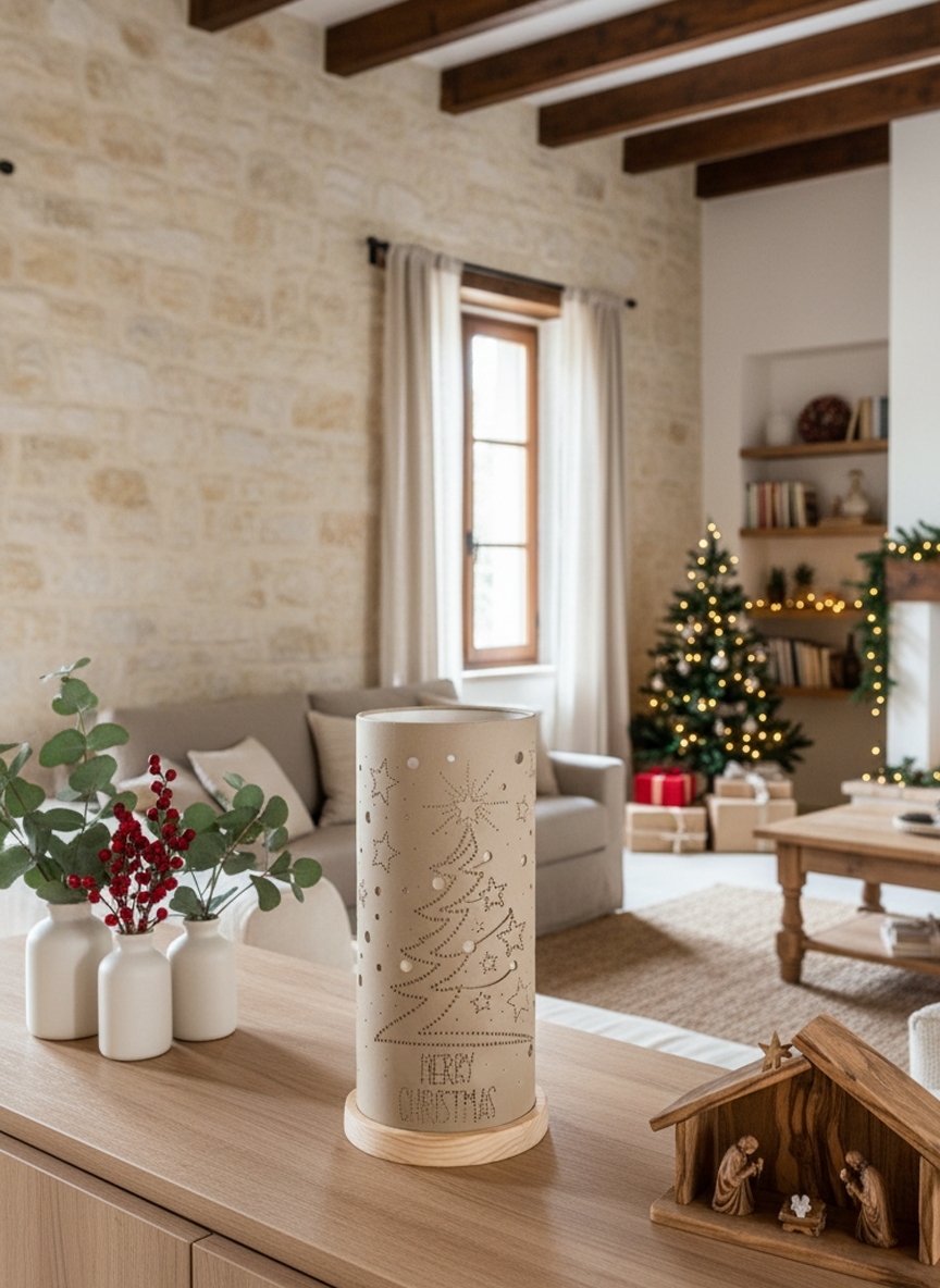 Illumina la tua casa con un’atmosfera natalizia elegante e d’effetto. Questa lampada artigianale, realizzata a mano con fori incisi uno a uno, crea un gioco di luci raffinato che valorizza qualsiasi ambiente: salotto, ingresso, tavola delle feste o angolo relax. Le linee luminose dell’albero di Natale rendono la decorazione immediatamente scenografica, trasformando la stanza in un luogo caldo e accogliente. Un complemento d’arredo ideale se cerchi un dettaglio che fa davvero la differenza, perfetto anche come idea regalo ricercata e originale.